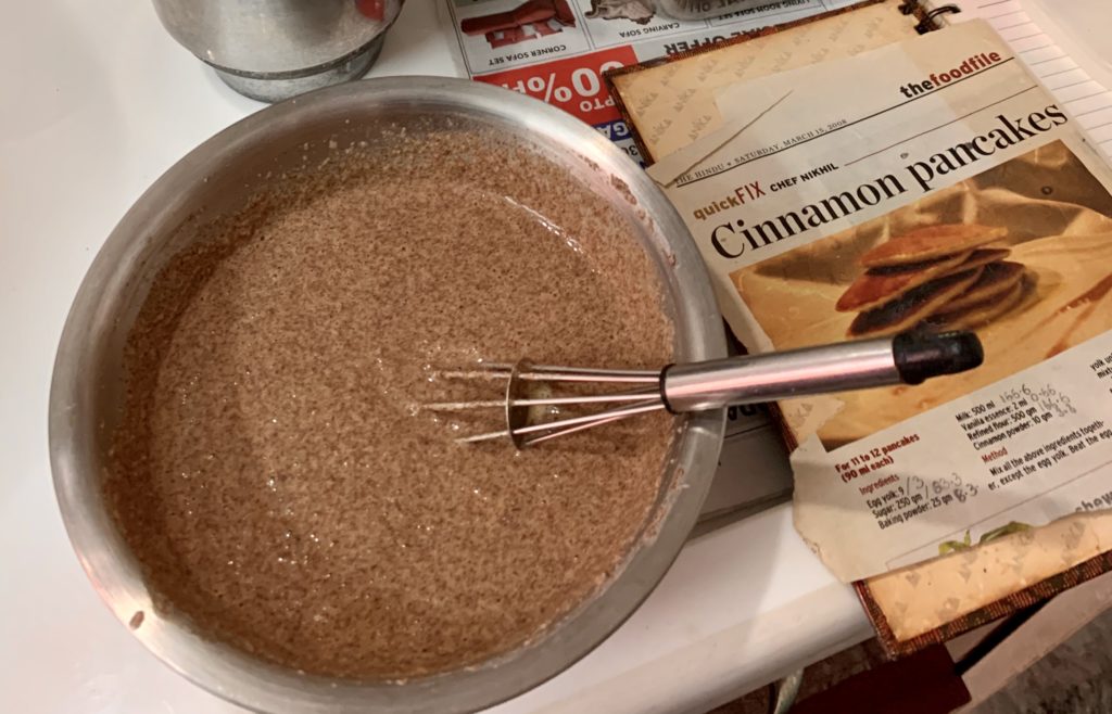 Heat a hot plate or dosa pan. Pour the batter (butter optional) on the plate. Flip and cook till golden brown. (I did cover the plate with a lid to cook the pancakes evenly).
